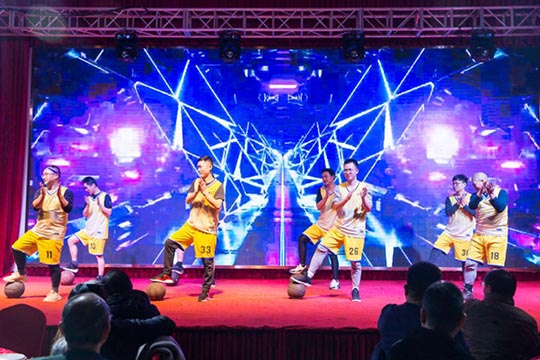 本次年會(huì)由公司內(nèi)部三個(gè)部門聯(lián)合承辦,所有節(jié)目均由承辦部門自編、自導(dǎo)、自演,充分展現(xiàn)了三圣人多才多藝的綜合素質(zhì)和自信向上的精神面貌。帥氣十足的佳佳和優(yōu)雅靚麗的雙雙,這一對(duì)主持搭檔帶給大家耳目一新的開場(chǎng)。隨后上演的一段兵乓球熒光舞,科技感十足的服裝、絢麗的七彩光,配上搞笑夸張的肢體動(dòng)作,子公司艾伯納三圣的節(jié)目征服了在場(chǎng)觀眾。接下來(lái)的“灌籃高手”全明星秀,三圣籃球社團(tuán)的部分成員們,在葛教練的指揮下,展現(xiàn)了酷炫嫻熟的運(yùn)球技藝和團(tuán)結(jié)默契的球隊(duì)配合。