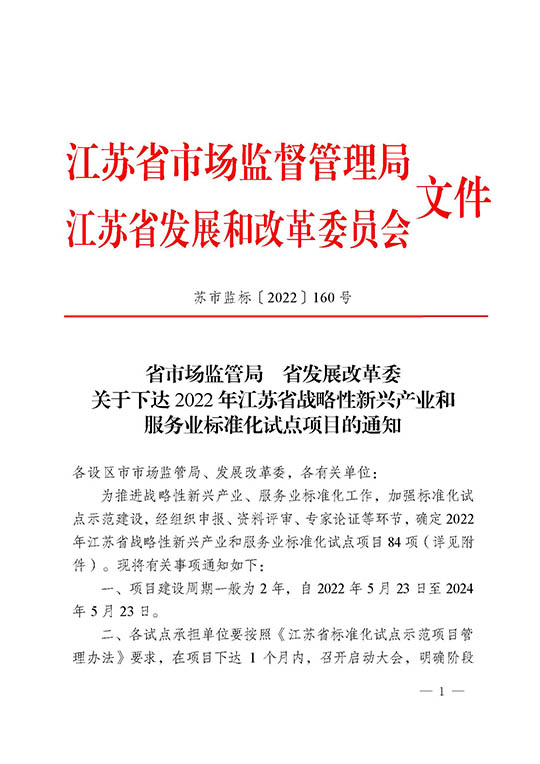江蘇省戰(zhàn)略性新興產業(yè)標準化試點項目由省市場監(jiān)督管理局和省發(fā)展和改革委員會共同組織。項目對申報單位有著明確的要求:市場占有率和經(jīng)濟效益排名位于本地區(qū)同行業(yè)前列,具有良好的發(fā)展?jié)摿Γ邆浣y(tǒng)籌技術創(chuàng)新、標準研制和產業(yè)化的能力等等。