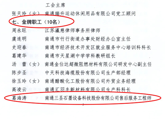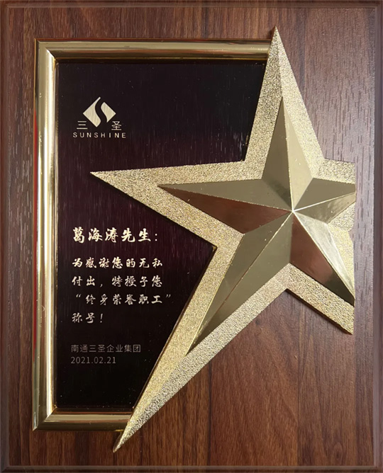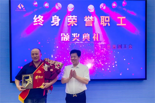 三圣奮斗史中閃耀著這樣一顆璀璨之星,他以堅定的信念和不懈的努力,登上榮譽巔峰,成為開發(fā)區(qū)當之無愧的一名“金牌員工”,并被三圣集團董事會、三圣工會授予“終身榮譽職工”的光榮稱號。