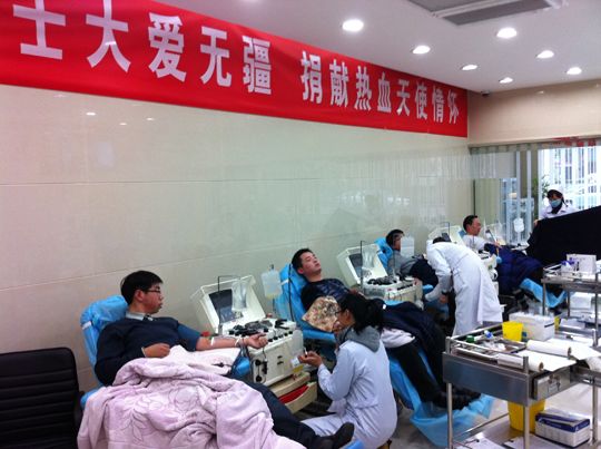 1月19日,患病同事趙亞東的家屬向公司發(fā)出了緊急求援,希望能有同事為趙亞東定向捐獻成分血。短短的半小時,質(zhì)檢部劉小冬、朱浩,國際部石玉成,事務部嚴建新在殷總的帶領之下迅速趕到市血站下屬的愛心獻血屋獻血。雖然遺憾的是,由于捐獻成分血對捐獻人的各項身體指標要求較高,五人均未達到要求,但他們的善舉仍然讓趙亞東的家屬非常感動。與此同時,公司、工會、愛心基金會聯(lián)合發(fā)出了為趙亞東獻血倡議,率先得知消息的科室員工積極響應,紛紛簽字響應獻血倡議,稍后得知消息的生產(chǎn)部員工也是積極響應,紛紛表示愿意為趙亞東獻血,甚至考慮到春節(jié)期間的用血。