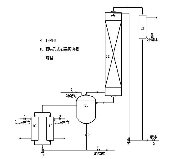 本系統(tǒng)采用先進設計理念,將生產過程產生的15%-25%的稀醋酸濃縮到99%,在此過程中使排放的廢水達到環(huán)保標準。系統(tǒng)主體設備-石墨精餾塔,采用聚四氟乙烯浸漬石墨新型材料制造,整個系統(tǒng)具有工藝先進,操作簡便,運行費用少,使用年限長的特點,目前,該系統(tǒng)已在浙江龍盛集團、浙江閏土集團成功運行。